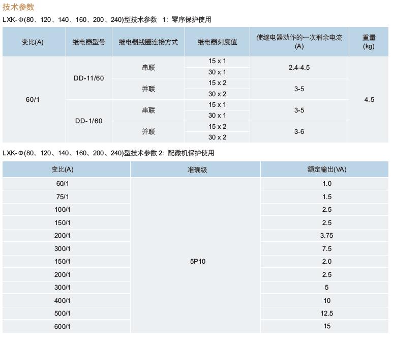 三、LXK-Φ80LXK-Φ120LXK-Φ140LXK-Φ160LXK-Φ200LXK-Φ240零序電流互感器變比參數