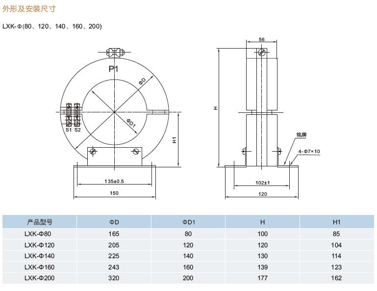 四、LXK-Φ80LXK-Φ120LXK-Φ140LXK-Φ160LXK-Φ200LXK-Φ240零序電流互感器尺寸