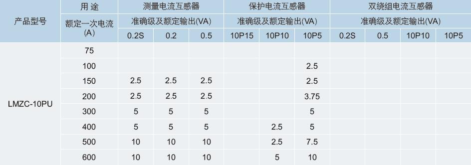 五、LMZC-10PU環(huán)網(wǎng)柜用電流互感器技術(shù)參數(shù)