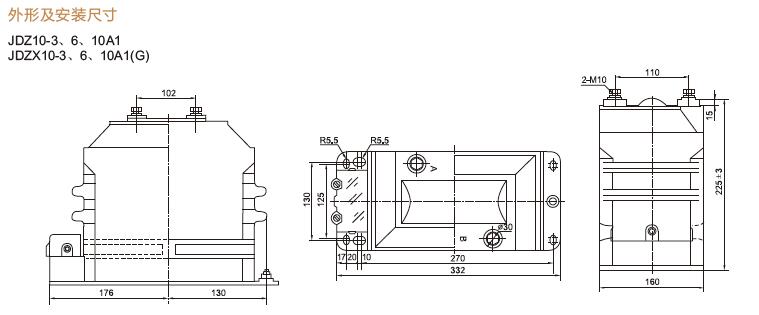 三、JDZ10-3A1(G)、JDZ10-6A1(G)、JDZ10-10A1(G)電壓互感器產(chǎn)品外形及安裝尺寸