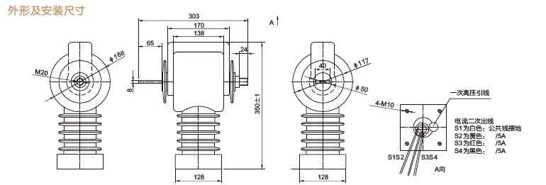 六、LZW32-10G2倒立式電流互感器產(chǎn)品外形及安裝尺寸