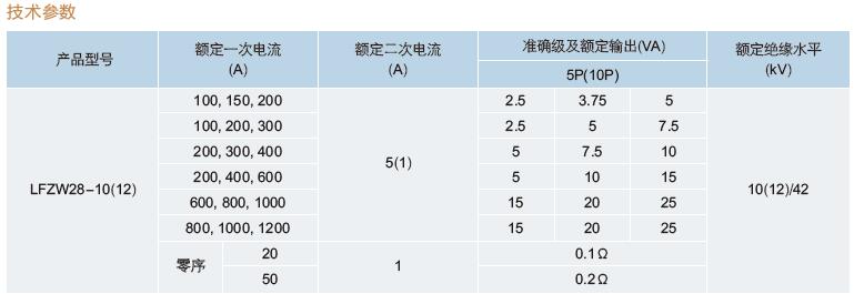 二、FZW28戶外負荷開關用高壓電流互感器LFZW28-10技術參數